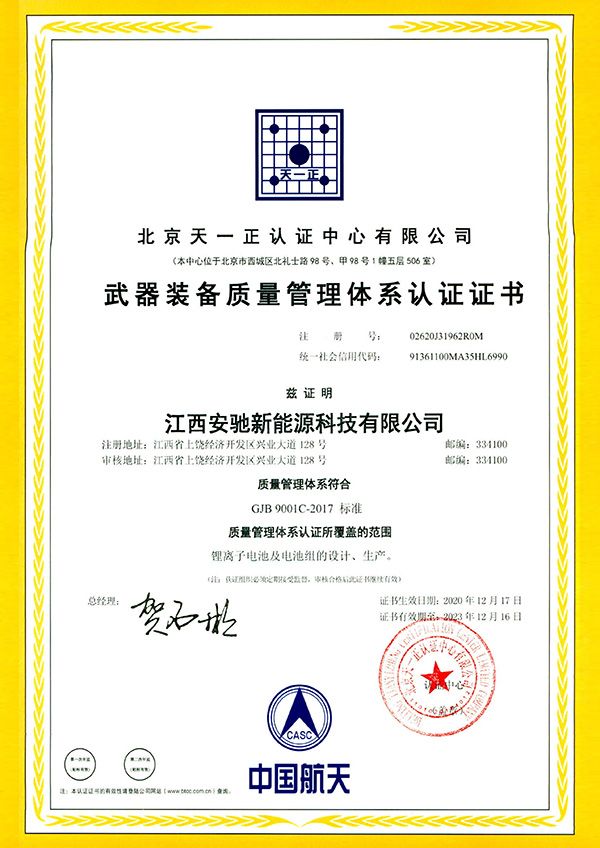 多年以來,公司始終堅持“質(zhì)量第一,關(guān)注客戶,持續(xù)改進(jìn),追求卓越”的質(zhì)量方針,不斷完善流程提升產(chǎn)品的質(zhì)量,于2020年順利獲得的了GJB9001C武器裝備質(zhì)量管理體系認(rèn)證。